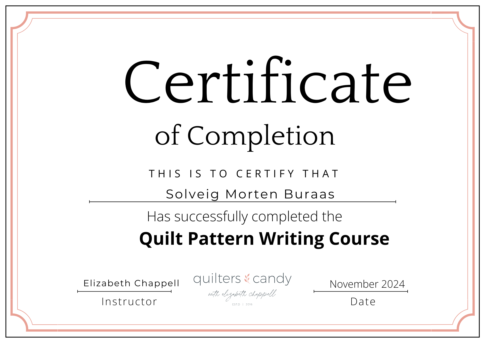 Etter denne modulen har du lÊrt alle stegene du trenger Ä kunne for Ä lage en quilt. Du kan allerede kalle deg selv en quilter. Men for Ä bli god pÄ noe trenger vi trening og det skal du fÄ i de neste modulene.