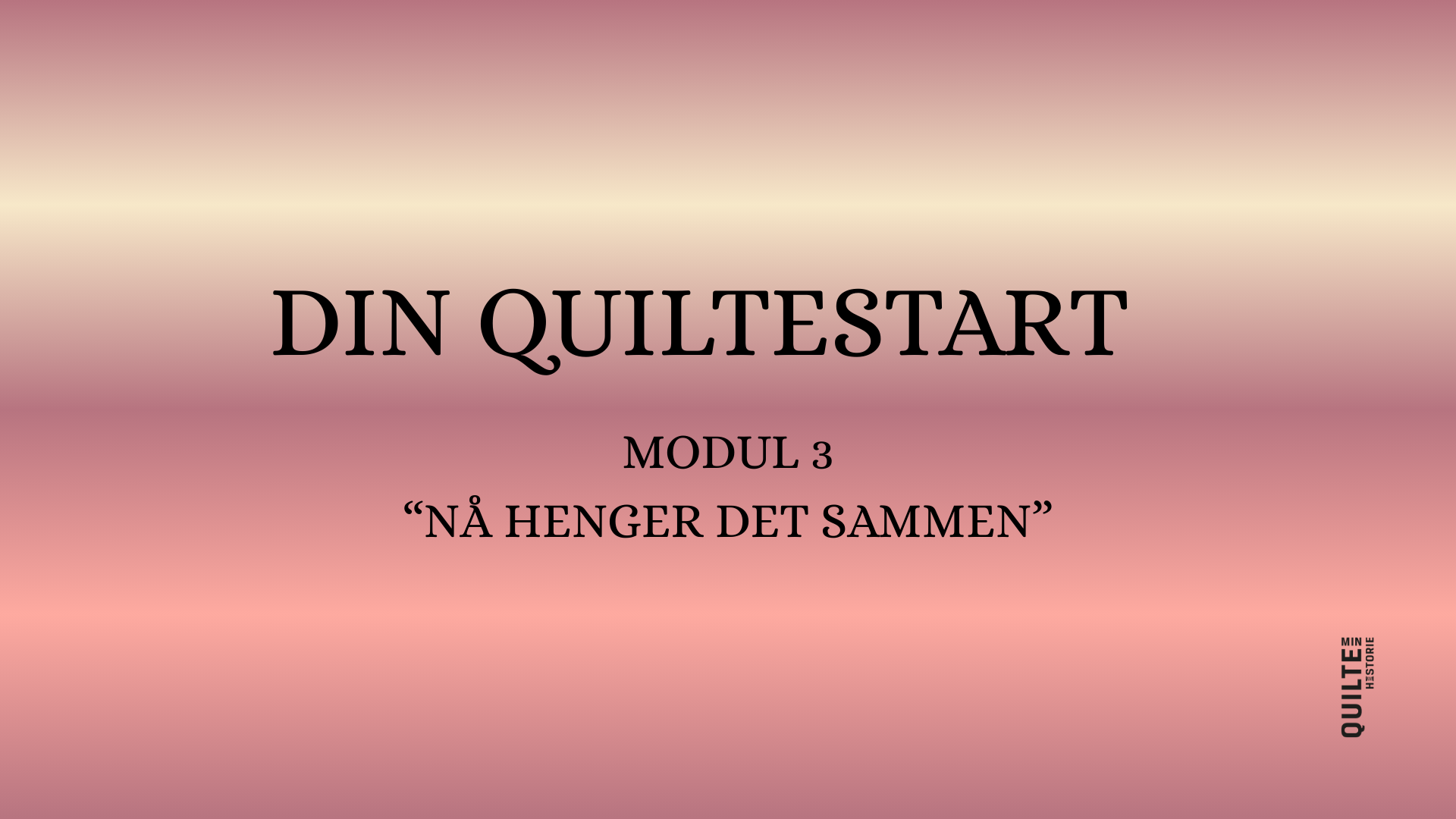 Etter denne modulen vil du ha et solid utgangspunkt og er allerede igang med Ă„ sy sammen stoffbiter du har skĂ„ret opp. Denne uka bygger vi fundamentet pĂ„ det som skal til for at du syr din fĂžrste quilt og har det gĂžy i prosessen.Â